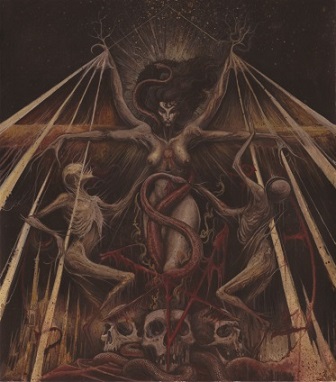 Bij een spelletje Scrabble zou het leggen van het woord “qrixkuor” een hoge score opleveren. Toegegeven, je zal Google erbij moeten halen om het woord te verduidelijken aan je medespelers want de kans is groot dat ze denken dat je hen in het ootje probeert te nemen met één of ander verzonnen woord. “Qrixkuor” is echter de naam van een vogel, ontleend aan een boek van de Engelse magiër, occultist, schrijver en dichter Kenneth Grant, leerling van Aleister Crowley en stichter van de “Typhonian Ordo Templi Orientis“. Ideale naam ook voor een occulte death metalband, moeten de individuen R., M., A. en S. in 2011 gedacht hebben. En alzo geschiedde! Er werden twee demo’s uitgebracht, maar het is met de nieuwe EP “Three devils dance” dat het Engelse kwartet pas echt potten zal breken. Hoewel er slechts drie songs op de tracklist prijken, klokt het zaakje wel op achtendertig minuten af. Geen hapklare brok luistermuziek om tijdens de afwas te beluisteren dus! Integendeel: hier moet je even voor gaan zitten want deze woeste draaikolk van dissonante, multi-gelaagde gitaarriffs, drukke drumroffels, intergalactische solo’s en diepe growls vormt een moeilijk verteerbaar geheel. Voor de doorsnee popmuziek liefhebber staat de muzikale output van Qrixkuor synoniem voor teringherrie, maar fans van Irkallian Oracle of Antediluvian die over een getraind paar oren beschikken zullen in dit sonisch surrealisme en in-reverb-gedrenkte chaos opmerken dat het viertal wel weet wat de voor- en achterkant van hun instrument is. Zowel gitarist/componist S., als bassist R. en drummer M. zijn academisch geschoolde muzikanten en S. voegt daar ook nog een master in het componeren van muziek voor films en televisie aan toe. Vandaar het cinematografisch karakter van de muziek waarbij de structuur en spanningsopbouw veel weg hebben van een film soundtrack – wel geen romantische komedie in dit geval. Doorheen de maalstroom aan onpeilbare en ondoorgrondelijke death metal zitten interludes verweven die geschapen werden middels Tibetaanse bekkens, gongs, drums, menselijke en dierlijke beenderen, stemmen en natuurlijke geluiden. Kortom: van dit plaatje is werk gemaakt. Eindelijk eens een vette release in mijn platenkast onder de letter “Q”!
