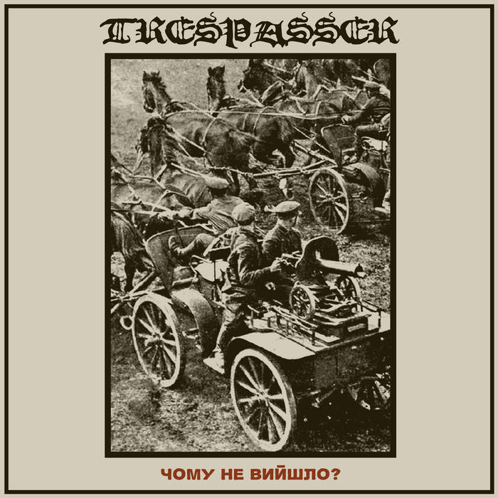 Politiek in muziek. Ik denk te mogen stellen dat de gemiddelde muziekliefhebber zijn of haar muziek het liefst politiekvrij heeft, hoewel de meesten een protestsong op tijd en stond wel kunnen waarderen. Er lopen echter tal van bands rond die hun muziek gebruiken om tal van politieke pijnpunten aan te kaarten. Binnen het wereldje van de extreme klanken zijn er aan beide uiteinden van het spectrum ook bands te vinden die hun politieke opvattingen middels hun muziek aan de man willen brengen. Aan de rechtse kant heb je NSBM en lijnrecht tegenover deze nationaalsocialistisch gezinde zielen staat de RABM-beweging wat staat voor Red and Anarchist black metal. Beide extremen clashen van tijd tot tijd, zeker als Antifa zich (te pas en te onpas) bemoeit. De meningen over dit fenomeen laat ik over aan de internet warriors onder ons. In het geval van de Zweed XVI en zijn band Trespasser is zijn muzikale uitlaatklep heel sterk politiek geïnspireerd. Gevoed door teleurstellingen in het fascistisch gedachtegoed van veel van zijn favoriete bands en het ontbreken van brutaliteit en muzikaal vakmanschap van veel van de ‘linkse’ spelers richtte de Zweed met een jarenlange achtergrond in de punk-scene in 2017 Trespasser als soloproject op. Al snel besloot hij echter zanger Dräparn aan de rangen toe te voegen (wat een uitstekende zet was op basis van zijn strot die we hier te horen krijgen) en na drie demo’s ziet de eerste langspeler “Чому не вийшло?” nu het levenslicht. De stijl van de zeven nummers die het debuut telt, beschrijft de muzikant als ‘anarchastische blastbeat mayhem’. Hoewel de sound overduidelijk als black metal omschreven kan worden, neemt XVI die term zelf niet in de mond aangezien hij walgt van de ego-worshipping en de quasi-spirituele rituelen waarachter veel black metal-bands zich verschuilen. Soit, de voornaamste inspiratiebronnen voor Trespasser’s muziek waren Marduks’ “Frontschwein“, Dissection’s “Storm of the light’s bane” en “Pure holocaust” van Immortal. Van die eerste twee is dat absoluut niet gelogen. Razendsnelle door blastbeats gevoede partijen, hondsbrutale vocalen, wat oorlogssamples dabei: de Zweedse pantserdivisie loert in pijlsnelle nummers als “Tachanka” en “The execution of Grigoriev” om de hoek. In de melodische stukken zoals de openingsklanken van “Hunted like wolves” leeft de geest van Jon Nödtveidt dan weer onmiskenbaar voort. De invloed van the sons of northern darkness is minder voor de hand liggend. De zeven nummers vliegen aan een rotvaart voorbij maar gelukkig kennen songs als het met-akoestische-gitaren-doorspekte “Death to fight death“, afsluiter “Miscreant dawn” en het met-plechtige-gezangen-doorspekte “To the barricades” ook de nodige mid-tempo passages. Thematisch gezien handelt de plaat over de geschiedenis van anarchisme en de ideeën van Nestor Ivanovitsj Machno, een Russische (Oekraïense) partizanenleider en volksheld die tijdens de Russische Burgeroorlog als leider van het Zwarte Leger, onder anarchistische vlag, streed aan wisselende fronten tegen wisselende vijanden. Ondertussen is de band door toevoeging van drummer Леопольд, bassist Upiór en gitarist Gyða Hrund ook klaar om live dood en anarchie te zaaien. “Чому не вийшло?” is een plaat waarvan het politiek statement wellicht groter is dan het muzikale doordat de invloeden er wat té dik bovenop liggen. Desondanks een erg effectieve, agressieve, maar niet-rechtlijnige black metal-plaat.
