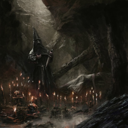 Dat deze Italianen hun bandnaam ontleend hebben aan het gelijknamige Xasthur-nummer lijkt me vrij ondenkbaar, want met lo-fi depressieve éénmans black metal heeft dit niets van doen. Integendeel, “De ritualibus et sacrificiis ad serviendum abysso“, het debuut (er verschenen eerder al twee EP’s) van Prison Of Mirrors, staat bol van de avontuurlijke black en death metal waarin met de nodige dissonanten in het rond gestrooid wordt. Een geluid dat oorspronkelijk door Franse pioniers als Deathspell Omega en Blut Aus Nord verkend werd en nadien gretig gekopieerd werd door tal van IJslandse bands. Het moge met andere woorden geen verrassing wezen dat Prison Of Mirrors onderdak heeft gevonden bij Oration, het label van Studio Emissary producer Stephen Lockhart en meesterbrein achter Rebirth Of Nefast. Stephen heeft immers een groot aandeel in de sound van het gros van de IJslandse black metal bands en nam ook de mix en mastering van deze plaat voor zijn rekening. De vier composities die op deze eerste langspeler prijken, vormen dan ook geen easy listening-materiaal. Opener “The unquenchable visions from the abyss” klokt meteen op negen minuten af. De twee volgende nummers doen daar telkens nog een minuutje bij en het afsluitende “Ascending through the majesty of the dark towers” verdubbelt de speeltijd van “Sigils for the ritual exhumation” en neemt een dikke 22 minuten voor zijn rekening. U weze gewaarschuwd! De duistere, occulte en rituele sfeerschepping die van de knappe albumhoes van Khaos Diktator Design (ofte Atterigner, die de Gorgoroth-plaat “Instinctus bestialis” inzong) afdruipt, vindt zijn weerga ook in het muzikale gebeuren. Met zo’n lange composities kan het ook niet anders dat Prison Of Mirrors de instrumenten ook geregeld lange tijd voor zich laat spreken. Hierbij creëren de riffs van Anubis en Lord Swart mystieke spanningsvelden waarin heel wat atonale riffs een akelig sfeer scheppen. Om de albumtitel geen onrecht aan te doen, mogen ook ritualistische elementen zoals sacrale Russische gezangen en rituele percussie niet ontbreken, maar drummer Bestia (o.a. Earth And Pillars) gooit ook tal van blastpartijen, tempowissels en minder gangbare ritmes in de strijd. Dikwijls vinden deze overgangen abrupt plaats in plaats van gelijdelijk aan aangekondigd en opgebouwd te worden. En wanneer Lord Swart zijn strot dan toch open trekt, ontsnappen er gortdroge screams die de satanische en orthodoxe boodschap verkondigen. Wel moeten de Italianen erover waken dat ze zichzelf niet te veel verliezen in hun ellenlange composities. Ik mis immers soms een kapstok, leidraad of écht memorabele riff die het ene nummer van het andere onderscheidt. Natuurlijk draait het bij een plaat als dit om de totaalbeleving en niet zo zeer om de indivuele songs, maar soms is minder ook meer weet je wel.