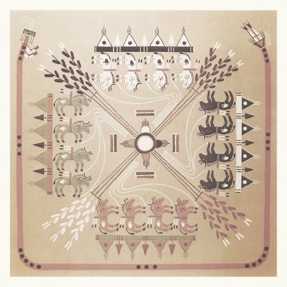 De albumhoes is een Navajo zandschildering, die oorspronkelijk werd geschilderd tijdens ceremonies zoals de Nightway ceremonie. Dit specifieke schilderij toont het verhaal van het Buffalovolk: een heilige man wordt op een wilde jacht op vier buffels geleid – twee mannetjes en twee vrouwtjes – die zich uiteindelijk openbaren als Buffalomensen die gestuurd zijn om gebeden en schilderijen te leren die hij tijdens rituelen kan gebruiken. De heilige man neemt de twee vrouwtjes als zijn echtgenotes, die dochters van het opperhoofd blijken te zijn, en vrouwen van Buffalo Who Never Dies. De heilige man doodt Buffalo Who Never Dies uit zelfverdediging, en iedereen behalve de twee vrouwelijke Buffalomensen sterven als gevolg. De heilige man gebruikt dan magie om ze te doen herleven, en geeft de vrouwen van Buffalo Who Never Dies terug.