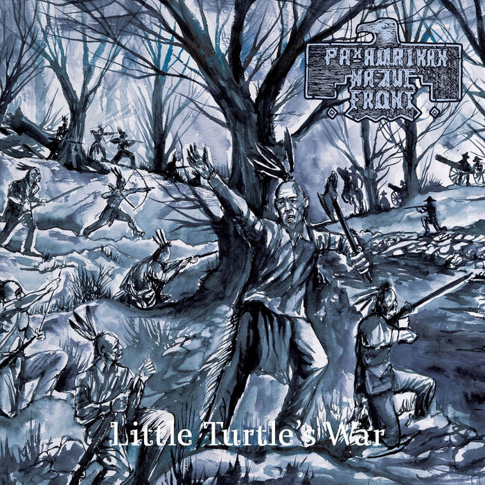 Native Amerikanen en black metal hebben elkaar enkele jaren geleden al gevonden, maar stilaan begint er een kleine buzz rond deze niche te ontstaan. Naast de Black Twilight Circle met bands als Kallathon, Kuxuan Suum, Volahn , Axeman, Ashdautas en Arizmenda zijn er ook onbekendere acts als Gybiaaw of Morbitory en met Ifernach en Pan-Amerikan Native Front zijn er ook enkel bands die recent veel belangstelling kregen. Deze laatste twee brachten vorig jaar nog een split uit. Nu is het de beurt aan een tweede langspeler voor Pan-Amerikan Native Front getiteld “Little Turtle’s war” die het debuut “Tecumseh’s war” uit 2016 opvolgt. Met strijdlustige (ninja)schildpadden heeft “Little Turtle’s war” niets van doen, maar dat had u waarschijnlijk al door. De titel verwijst naar de bijnaam van Michikiniqua, een legendarische Amerikaanse inheemse leider. Hij was een commandant, militaire strateeg en gemeenschapsleider en het album vertelt het relaas van de militaire successen van de Westelijke Confederatie onder leiding van Little Turtle en Blue Jacket die tussen 1785 en 1795 plaats vonden in het gebied van the Great Lakes. Zo leidde Michikiniqua samen met Weyapiersenwah tijdens de Slag om de Wabash een leger van inheemse strijdkrachten naar de grootste overwinning ooit tegen een Amerikaans leger. Het nummer “Michikiniqua’s triumph” handelt over deze gebeurtenissen aldus Kurator Of War, de man achter Pan-Amerikan Native Front. De titel van het laatste nummer “Nakaaniaki meehkweelimakinciki” betekent zo veel als “We herinneren de oude” en tot op de dag van vandaag kun je Michikiniqua’s grafsteen vinden in Fort Wayne in Indiana. Bij dergelijke thematiek verwachten we natuurlijk een exotische kruiding van de black metal die ons voorgeschoteld wordt. We horen inderdaad kabbelende beekjes, tsjirpende krekels, oorlogsdrums (o.a. in het korte instrumentaaltje “The whispering oak“) en pakkende akoestische klanken en het laatste nummer wordt volledig in de inheemse taal Myaamia vertolkt, maar van ons mocht hier gerust nog een stapje verder in gegaan worden. De black metal die de kwade Kurator Of War op ons afvuurt klinkt triomfantelijk en oppeppend en vertoont in nummers als “Power of the Calumet dance” en “Battle of the Wabash” ook kleine warmetaltrekjes door de robuuste drumstijl die gehanteerd wordt. In “Michikiniqua’s triumph“, waarin traditionele inheemse gezangen hun opwachting maken, gaat de man met Mexicaanse roots echter voor een wat meer swingendere aanpak wat resulteert in een minder hoekig songkader en een meer dynamische songstructuur. Het levert één van de betere nummers van de plaat op. “The great white beaver lurks” kent een wat sterielere aanpak en injecteert een koude realiteit voor Michikiniqua want een invasie is op til. Op zich klinkt Pan-Amerikan Native Front niet zó bijster speciaal of uniek of het moest in de reeds vermelde, meer dan negen minuten durende epische afsluiter zijn waarin we echt een wondermooi akoestisch intermezzo te horen krijgen dat even rust brengt in de opzwepende blackmetalklanken. Op deze momenten weet de band écht te overtuigen. Wanneer de warmetalinvloeden doorschemeren, doet het me net iets minder ook al is het de soundtrack voor een leger indianen dat ten strijde trekt. Maar beoordeelt u vooral zelf.