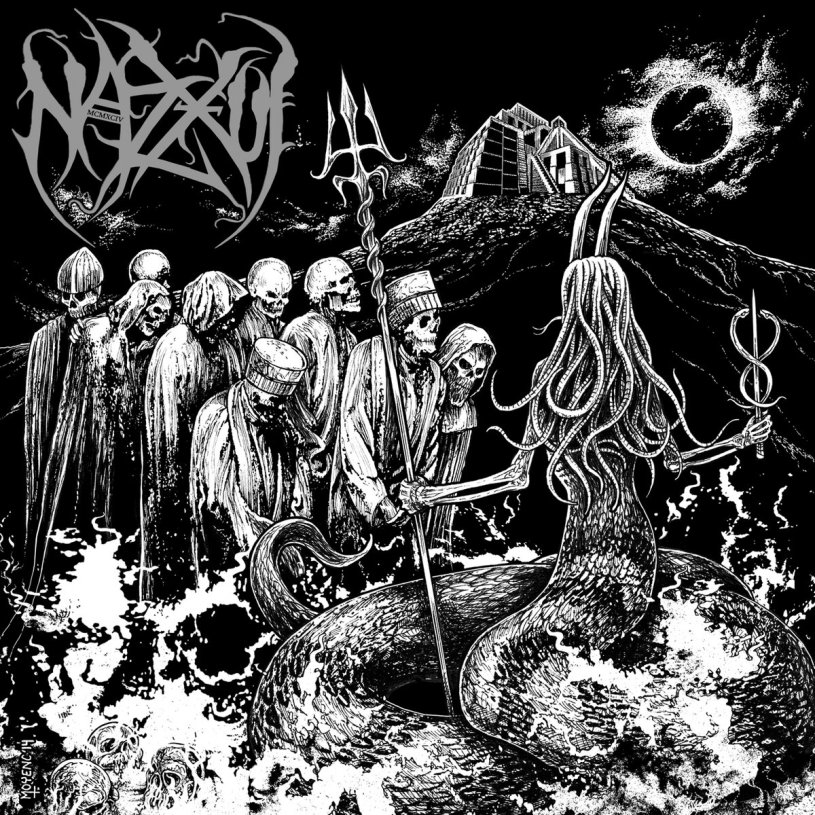 Het Australische Nazxul houdt er een nogal vreemd parcours op na. De band was er in 1993 al bij en bracht twee jaar later debuut “Totem” uit, een cult klassieker. Drie jaar later volgde nog de “Black seeds” EP maar na afloop van het concertparcours dat in diens nasleep volgde, doofde de band rond de millenniumwissel uit, hoewel er nog wel wat kleinere releases met onuitgegeven nummers en een live album volgden. In 2008 meldde Nazxul zich terug aan het front met de tweede langspeler “Iconoclast” waarop gitarist/keyboardspeler Greg Morelli postuum te horen is, daar hij kortelings na de opnames in een motoraccident om het leven kwam. Opnieuw werd er getourd en er verscheen nog een dark ambient split met Melek Tha en een EP, maar dan werd het opnieuw erg stil rond de Australische band. Nu, meer dan een decennium later is er plots een derde full-length in de vorm van “Irkalla“, vernoemd naar de met de hel vergelijkbare onderwereld uit de Babylonische mythologie. Normaliter is een terugkeer uit Irkalla alwaar de godin Ereshkigal en Nergal, god van de dood, het voor het zeggen hebben, onmogelijk, maar Nazxul is er toch in geslaagd om zich terug naar de bovengrond te murwen. “Irkalla” bevat ‘slechts’ vier nummers en hoewel er twee op meer dan tien minuten speeltijd afklokken, blijft een totale speelduur van een klein half uur maar een mager beestje, zeker als je een decennium lang van de aardbol verdwenen bent geweest. Nazxul koos anno 2021 voor een geluid dat het midden houdt tussen de brutaliteit van het debuut en de grandioosheid van het latere werk. Een half uur lang lijk je je te midden van een niet aflatende wervelwind te bevinden met denderend, hoekig drumspel dat genadeloos op je inbeukt, gorgelende in vitriool gedrenkte screams die haat en vernieling prediken, een tumultueus riff inferno en symfonische toetsen die door het dicht gepakte geheel priemen. De duivelse intensiteit van deze vier nummers kan niet ontkend worden, maar het geheel komt bij momenten ook wel als een kakofonie over. Vooral het eentonige, klinisch klinkende drumspel irriteert hierbij. Veel dynamiek zit er niet echt in de composities verwerkt. ’t Is te zeggen: ’t is een beetje een “alles of niets”-verhaal want ofwel raast de band ongestoord door ofwel valt de orkaan plotsklaps stil om plaats te maken voor sinistere ambient. Er lijkt amper een tussenweg van mid-tempo passages te zijn die de spanningsboog moeten aantrekken om dan voluit de bombastische symfonische blackmetalkaart te trekken (of het moet in het afsluitende “Stygian” zijn, meteen ook het beste nummer van “Irkalla“, maar waar nogal abrupt de stekker uitgetrokken wordt). Ik kan niet anders dan een ontgoocheld gevoel aan deze “comeback”-plaat overhouden. Ik zet “Iconoclast” nog wel eens op als ik een Nazxul in topvorm wil horen.