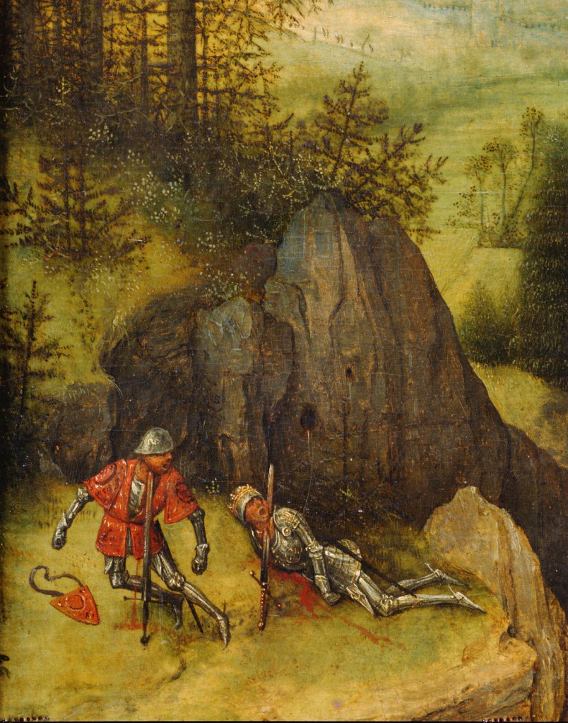 De promomail bevatte tevens een middeleeuwse afbeelding van twee ridders die aan een zwaard gerijgd zijn. Wie schilderde deze afbeelding en waarom vonden jullie deze bij de band of het concept passen?