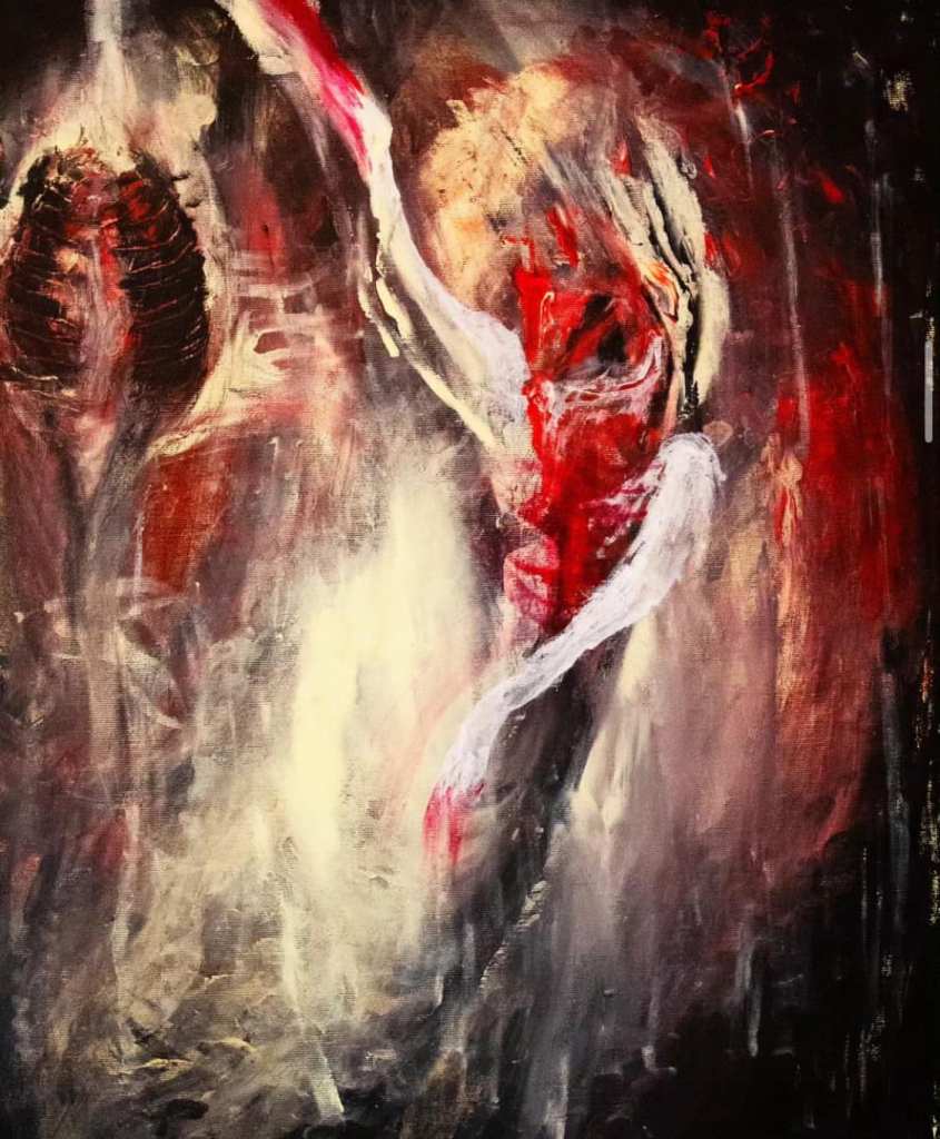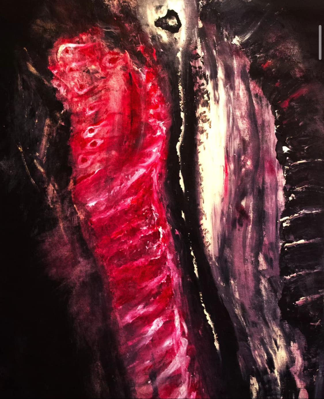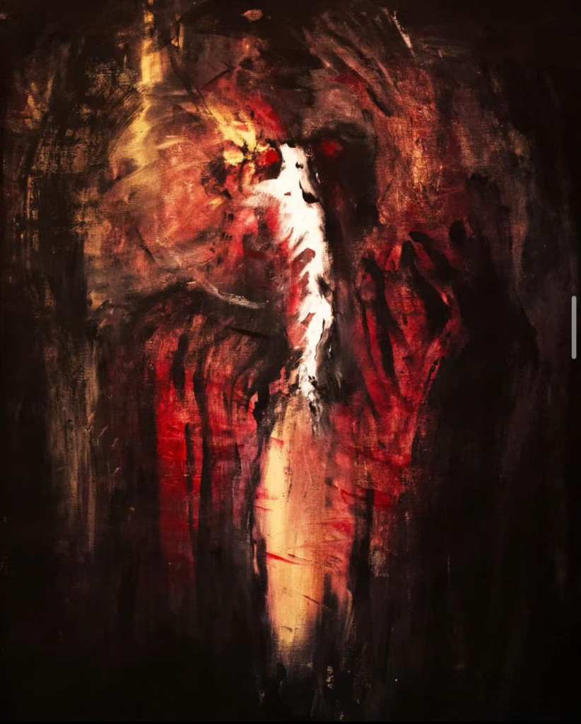 Sinds de debuut-EP “Bodemloos” werk je consequent met Terzij De Horde zanger Joost Vervoort als grafisch vormgever van dienst. Die heeft zichzelf wederom overtroffen met zijn schilderij voor “The mother” in wiens abstracte penseelstroken ik een soort van larve meen te ontwaren. Hoe kijk jij naar de opkomst van AI in grafisch werk voor o.a. albumhoezen? Snap je de kritiek die een band als Pestilence recent over zich heen kreeg?