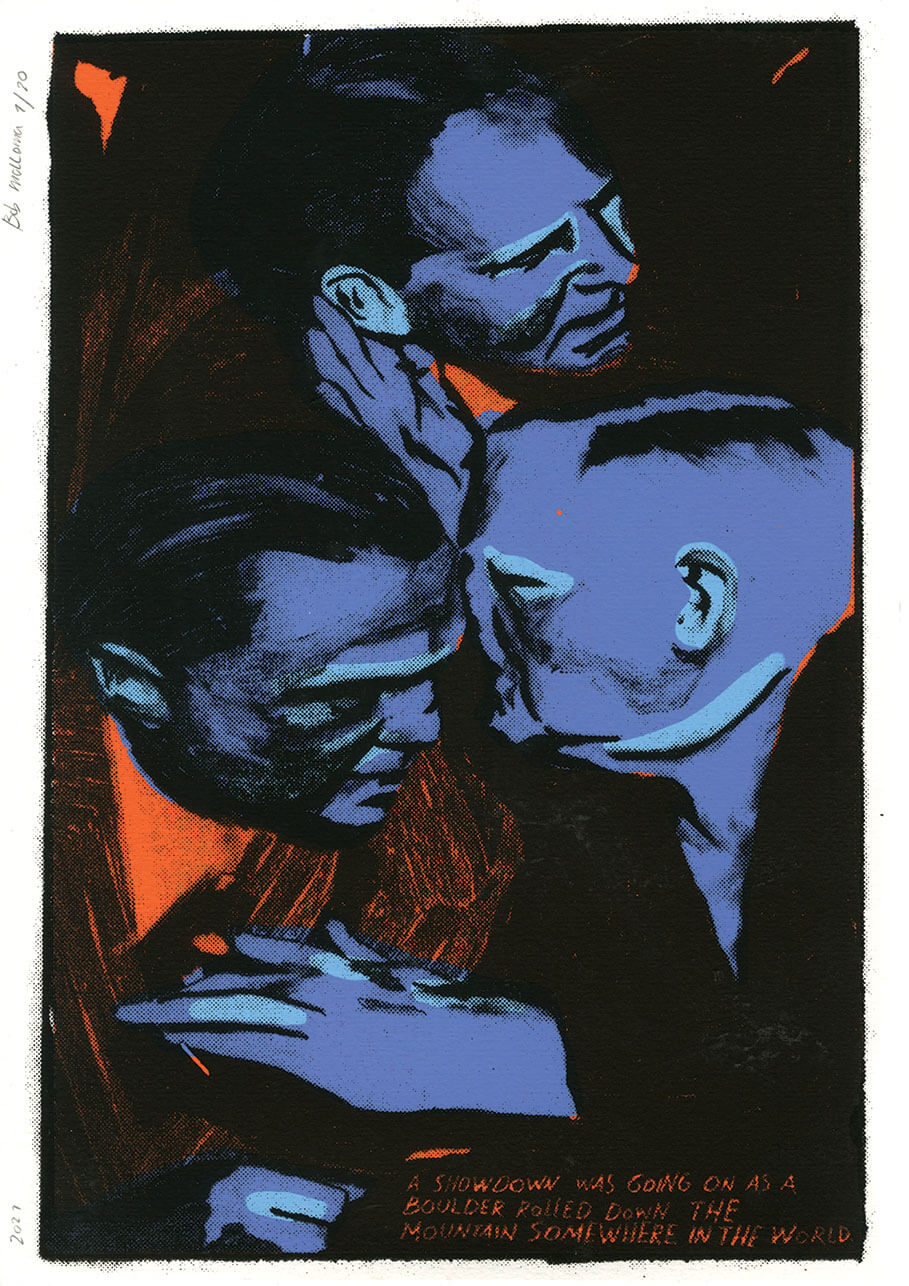 Ik ben door enorm veel dingen geïnspireerd! Ik vind bijvoorbeeld Francis Bacon, Asger Jorn, Ivan Rabuzin, Peter Larsen en Grandma Moses – samen met veel anderen – tof. Daarnaast laat ik me rijkelijk beïnvloeden door wereldwijde folkloristische kunst. Met name Lubok. Dat zijn zeer simpele visuele vertalingen van Russische volksverhalen die in de 18e en 17e eeuw als prints ter ondersteuning van die verhalen dienden. Ook verschenen ze soms in series en waren ze bedoeld als decoratie. Het is bijna een soort oervorm van de visuele sequentie (strip). Daarnaast heb ik een verzameling oud verpakkingsmateriaal. Met name luciferdoosjes uit India, Japan en Rusland. Dat zijn een soort kleine altaartjes. Vooral die uit India! Daarnaast luister ik naar een grote hoeveelheid verschillende muziek. Dingen die terugkeren qua muziek zijn Harold Budd, Brian Eno, Roxy Music, Steve Roach, Michael Stearns, Dimmu Borgir, Darkthrone, Dødheimsgard, Covenant, Lee Hazlewoord, Serge Gainsbourg en Brigitte Bardot. Even wat namen droppen; ik merk dat ik eindeloos kan doorgaan dus het houdt hier op.