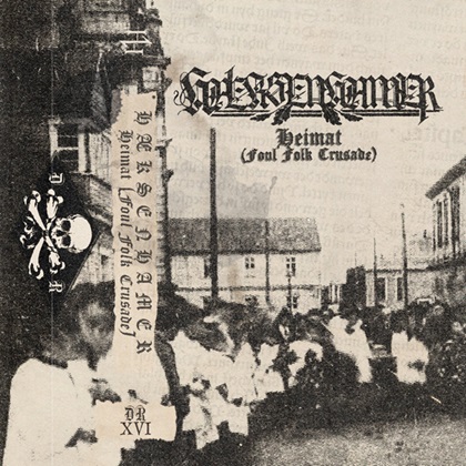 Danig onder de indruk van de “With sacred horror“-EP van het Duitse Sacris Ritus Vermes besloten we verder te grasduinen doorheen de releases van het nog vrij jonge Death Revelations label, dat naast uitstekende (re)releases ondermeer ook een onontbeerlijk boek m.b.t. de Nidrosian scene uitgaf. Zo kwamen we al snel uit bij het onbekende Hæksenhamer, een trio uit (vermoedelijk) Duitsland, en diens “Heimat (Foul folk crusade)” EP.