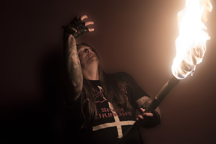 Afgezien van de regels “Dominus Spiritus Sathanas, Dominus Virtus, Dominus Spiritus Virtus Sathanas” uit het nummer “Darkzone martyrium“, heb ik nooit veel satanische verwijzingen in je teksten opgemerkt. Beschouw je jezelf of de band als satanisch?